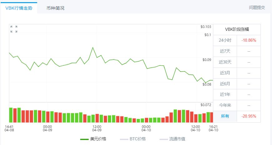 B网(Bittrex)与Upbit联合首发的项目“Veriblock”于4月3日上线,在10秒之内完成了700万美元的申购。然而在B网开通交易后,Veriblock的项目代币却破发了,截止到现在,价格已下跌20%。