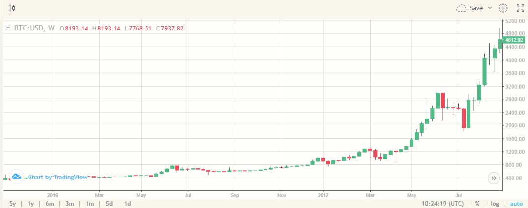 比特币第二次区块奖励减半发生在2016年7月,在之后的一年内,比特币价格飙升了近10倍,从268美元上涨到2,525美元。