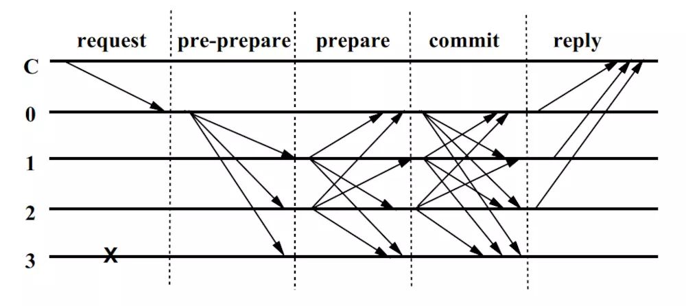 reply:0123节点在commit阶段,若收到超过一定数量的相同请求,则对C进行反馈根据上述流程,在N ≥ 3F + 1 的情況下,一致性是可能解决的,N为总计算机数,F为有问题的计算机总数。