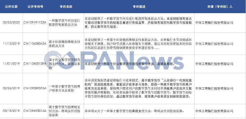 工商银行与CBDC直接相关的专利 | 来源:国家知识产权局,PANews制表