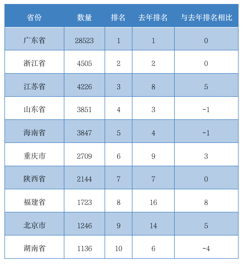 (二)广东企业增量最多,新疆、江苏、海南等地增速领跑
