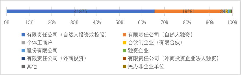 从企业注册的人员规模来看,从业人员在100人以下的小微企业最多,占96.40%;人员规模在100-300人的中型企业约占3.04%;仅0.55%的企业人员规模在300人以上。