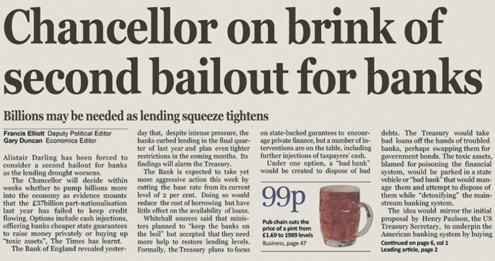 2009年1月3日《泰晤士报》的封面故事。资料来源:《泰晤士报》