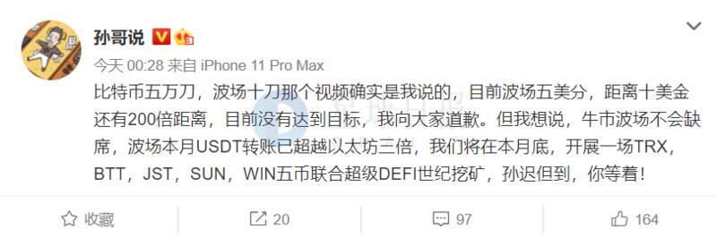 在 1 月 25 日流传的社群聊天记录中,孙哥也曾提到过 Sun Network 将与“平行链拍卖”、DeFi 一并成为波场未来的三大重点方向。
