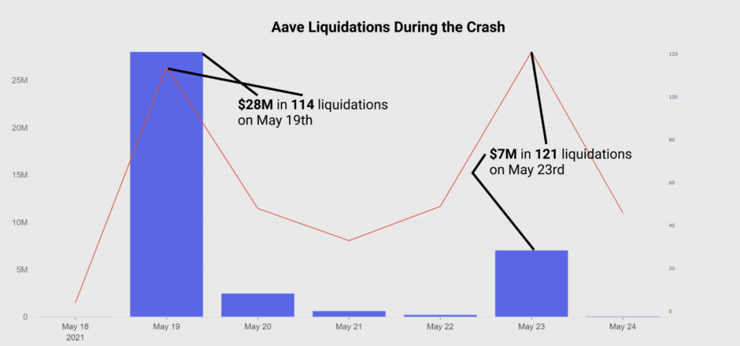 借贷协议已经体现出来了,价值锁定保持强劲,清算保持在最低水平。在市场崩溃期间,稳定币抵押品的损失是借款人的一个关键风险。随着价格越来越不稳定,抵押品的要求也更难满足。此外,不稳定的抵押品、清算和不同的利用水平会造成利率的波动。波动的利率会导致借款人进一步提款。幸运的是,稳定币保持健康,利用率保持健康,借贷市场总体上在高波动期间表现得如意。在崩盘过程中,415名借款人在Aave上面临清算事件,清算金额仅为3840万美元