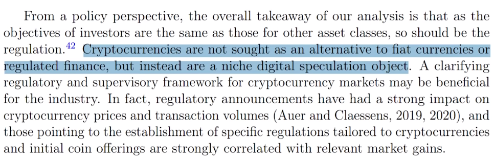 首先,它认为加密货币不被投资者和我们引用的利基数字投机对象视为货币。因此,它们应该受到严格监管。