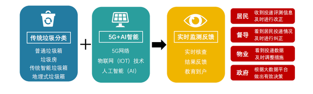 通过分层拍照、边缘计算、神经网络、5G技术和人工智能分析,居民的每一次投递系统都会记录并分析投递的准确性。系统后台会根据结果实时反馈居民和督导员,同时保留的数据进行下一步决策。