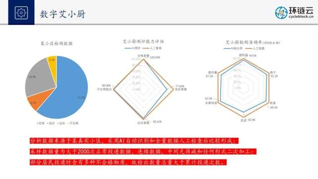 艾小厨智慧眼。持续进化的测评引擎,以小区实景数据为训练样本,已具备了良好的厨余垃圾鉴别能力(可识别超过10万种生活废弃物),并持续进化中。