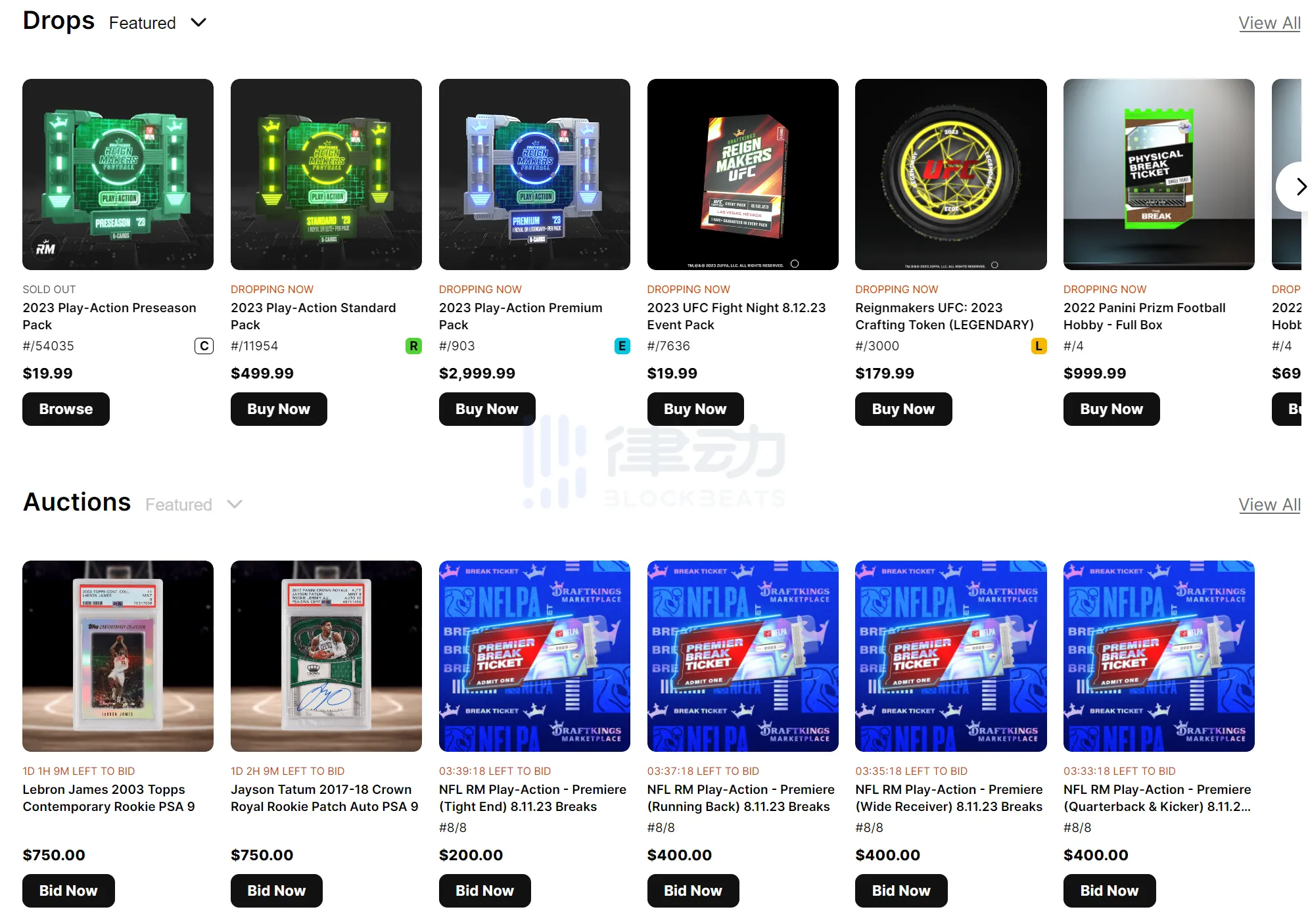 排名第 2 的 DraftKings 7 天内成交量达到 670 万美元,约占历史总成交量的 35%,成交量在最近的快速增长使 DraftKings 在最近被形容为「Polygon 上的 NBA Top Shot」。DraftKings Marketplace 是由 DraftKings(纳斯达克股票代码:DKNG)为「面向大众」构建的 NFT 市场,里面卖的有球星卡、Reignmakers 足球、高尔夫和 UFC 经营游戏的资产以及一些虚实结合的产品。