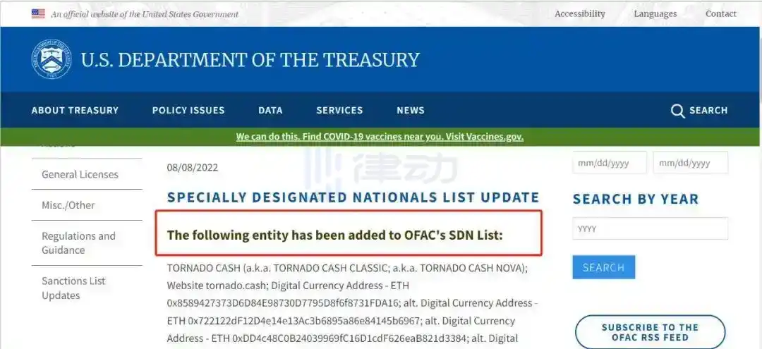 一年前的 8 月 8 日,OFAC(美国财政部的海外资产控制办公室) 的官网显示,将部分与 Tornado Cash 协议或与之相关的以太坊地址进行交互的地址,放入 SDN List(美国特别制定国民名单),进行制裁。