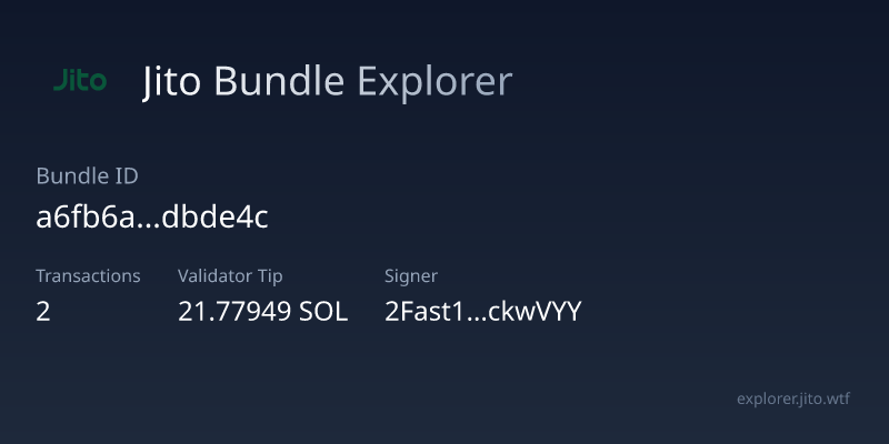 耗费21.78个SOL以确认交易:https://explorer.jito.wtf/bundle/a6fb6ad4f7f4ad1f797c2115f688e6bc178f2609a1a420769af97a17b6dbde4c